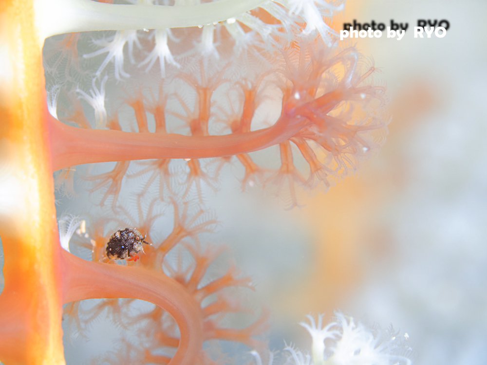 「ヨコエビsp」がウミエラ畑に新たに登場しました。。花咲き乱れる中に佇む姿は、昔見た、桜木の中にいるメジロを彷彿とさせます。。