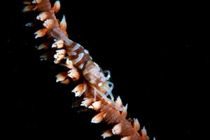ずっと同じ場所にいる少し珍しいエビ。「キミシグレカクレエビ」